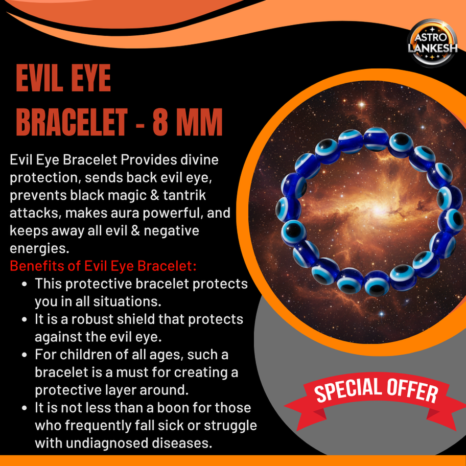 Evil Eye Bracelet Provides divine protection, sends back evil eye, prevents black magic & tantrik attacks, makes aura powerful, and keeps away all evil & negative energies.